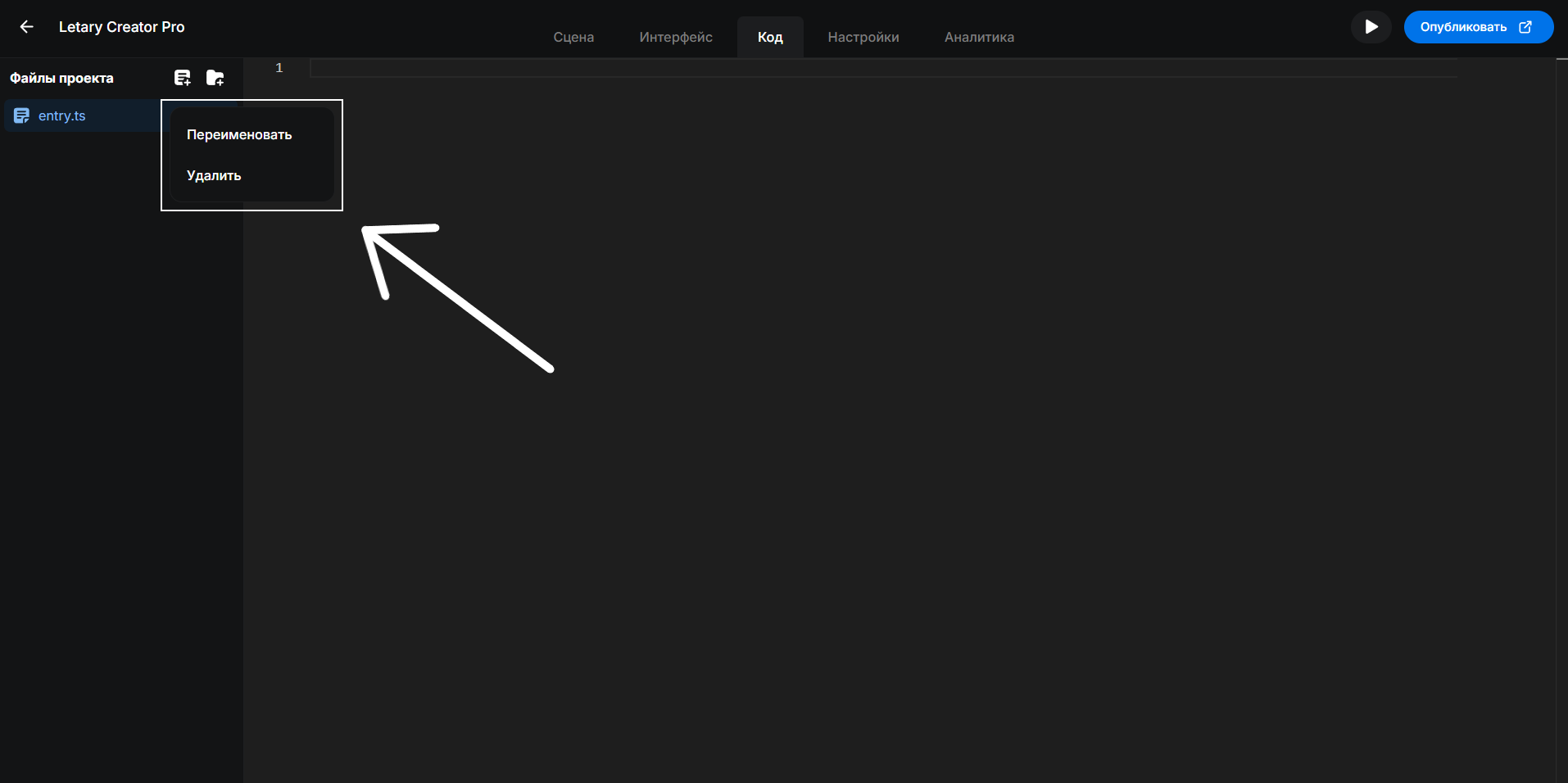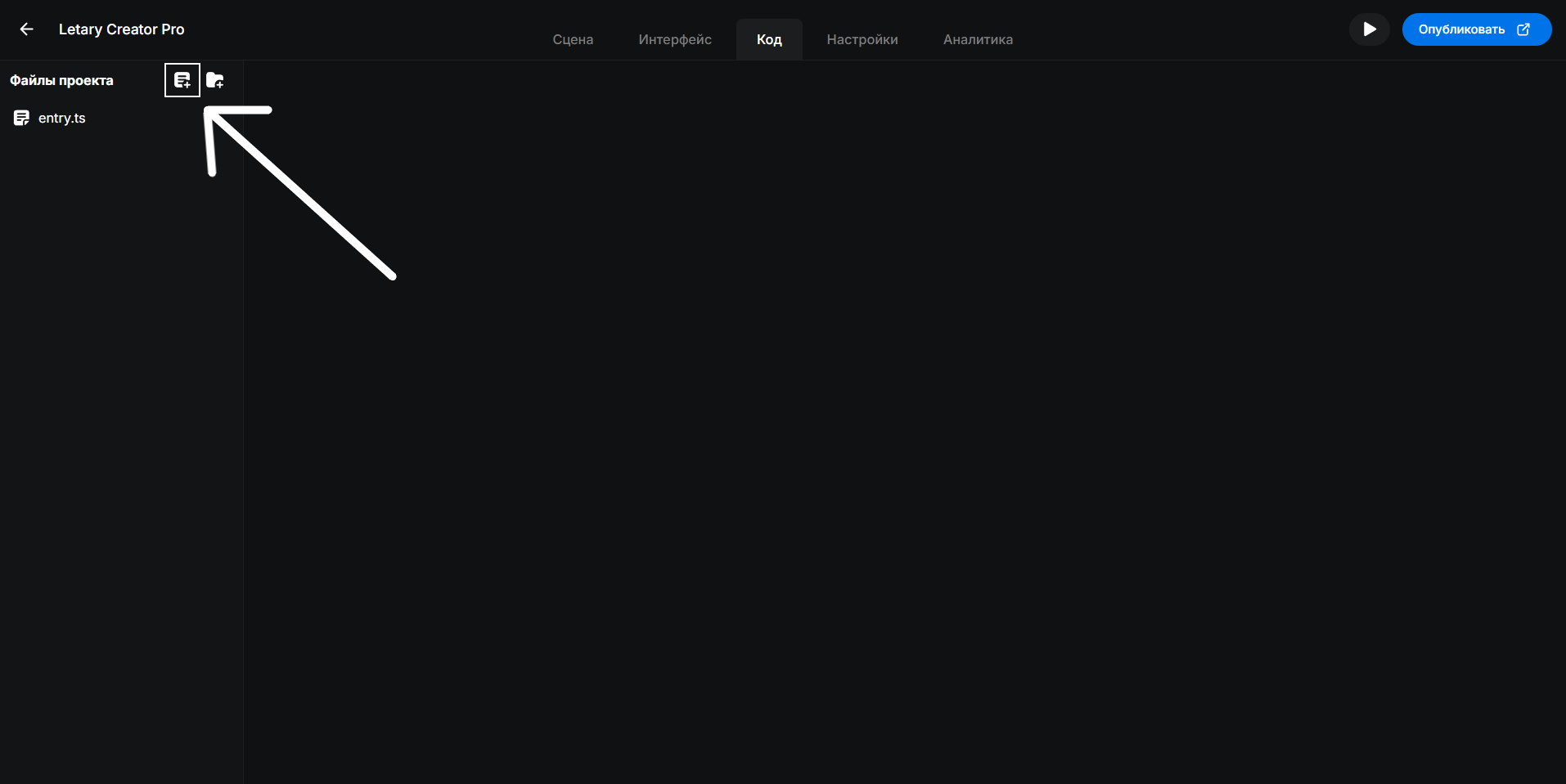 1. Нажать на кнопку "Создать файла" в верхней части блока "Файлы проекта"